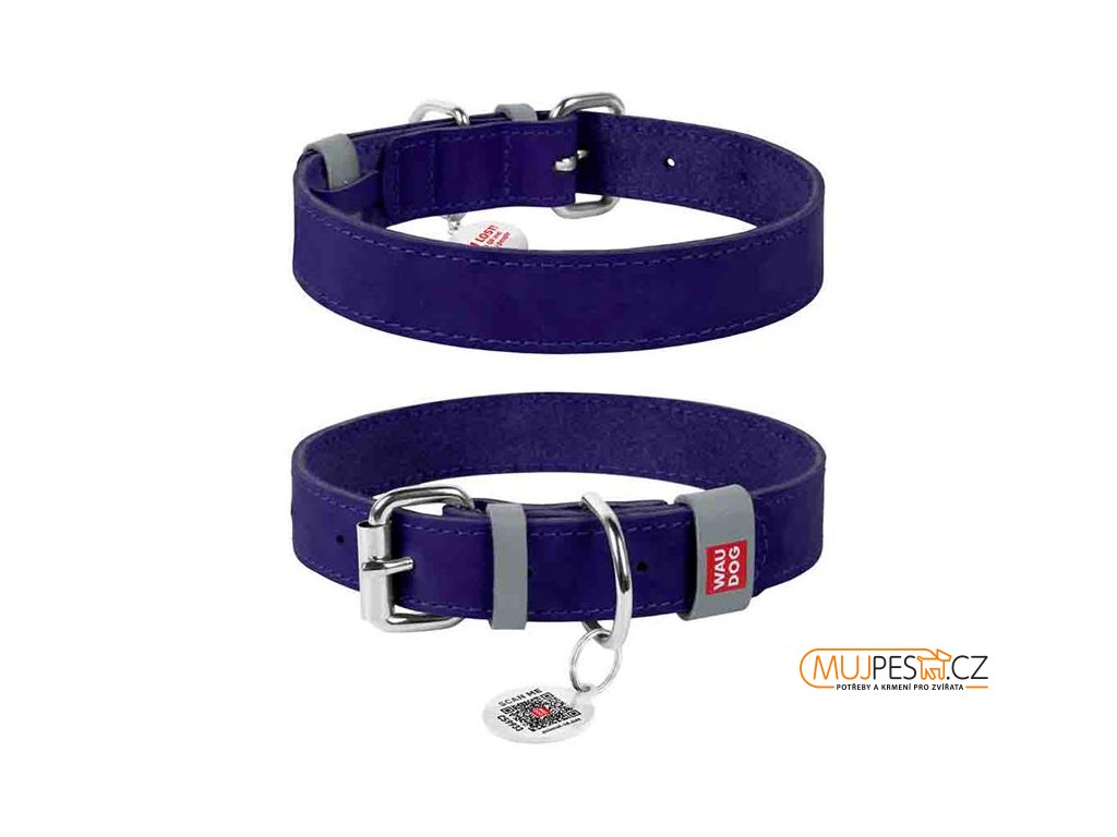 Obojek kůže 25mmx38-49cm WAUDOG fialový