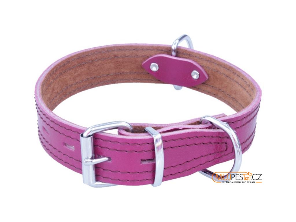 Kožený šitý obojek z vrchové hovězí kůže od společnosti B&F. Obojek je zdobený prošitím. Velice snadné zapínání na velkou kovovou sponu.