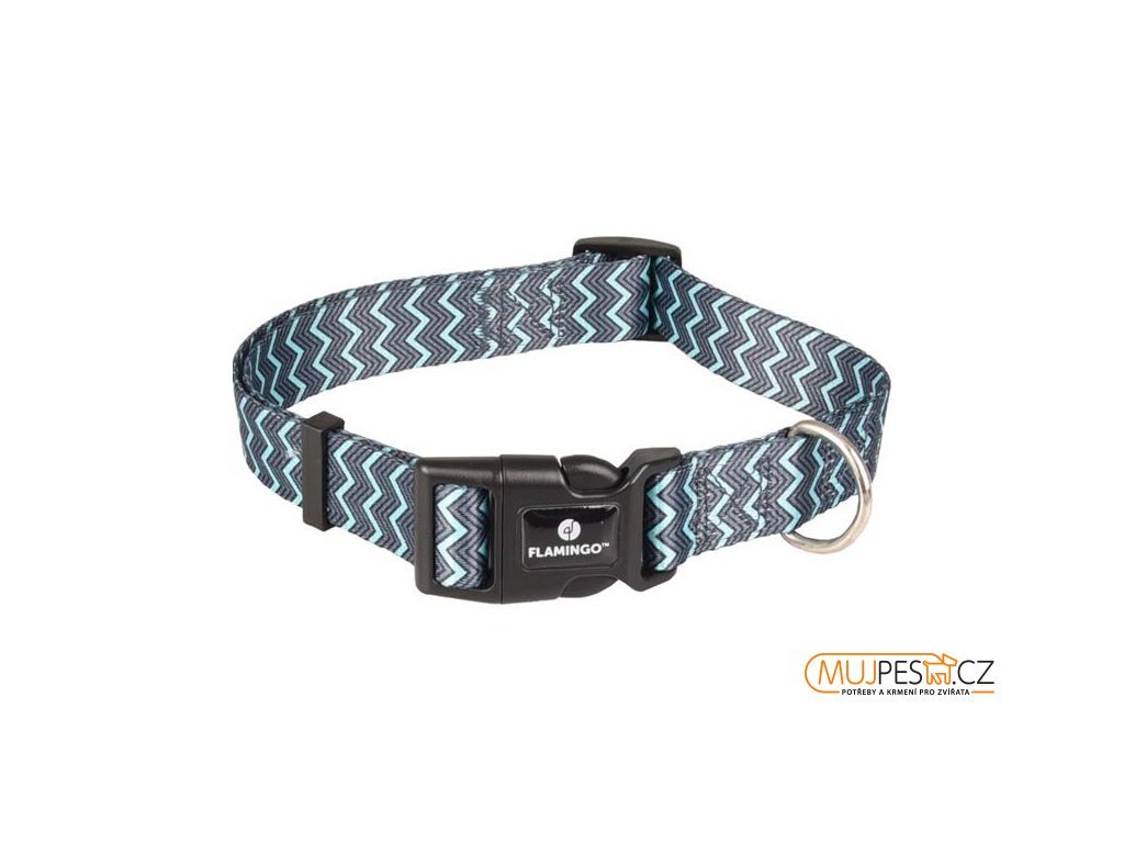 Obojek Flamingo Sinam je vhodný pro štěňata i dospělé psy. Je vyroben z pevného a voděodolného nylonu. Má pohodlné zapínání na plastovou přezku a je opatřen chromovaným D-kroužkem na připnutí vodítka. Délku lze nastavit v rozmezí 30–45 cm.