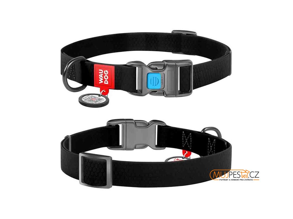 Obojek WAUDOG Waterproof je vyrobený z collartexu, inovativního materiálu, k jehož hlavním přednostem patří voděodolnost, vysoká životnost, tvarovatelnost, nízká hmotnost a snadná údržba. Pásek má na dotek příjemný, jemně texturovaný povrch a je měkčí než běžné plastové výrobky – budete-li jej tedy potřebovat časem povolit, nezůstane pokřivený v původním místě ohybu. Ve spojení s dalšími odolnými plastovými součástmi (včetně trojzubcové spony s pojistkou) tak tvoří odlehčený obojek, který pořídíte za příznivou cenu.