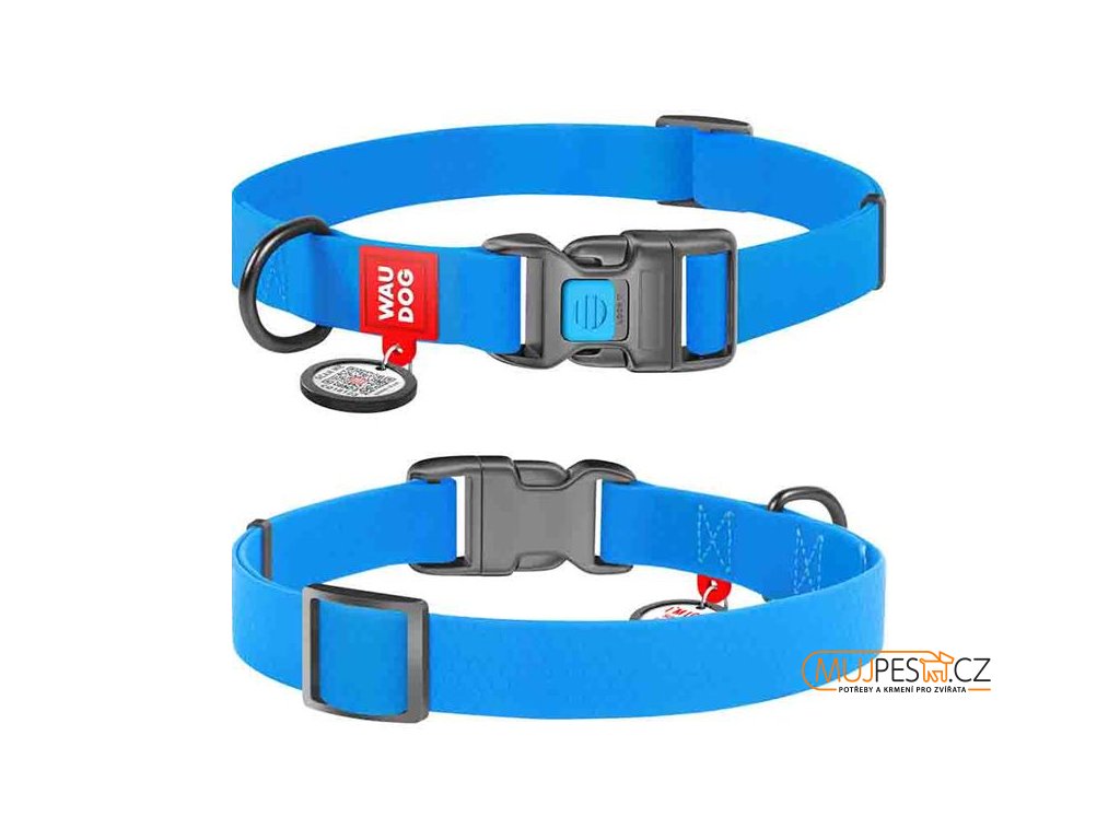 Obojek WAUDOG Waterproof je vyrobený z collartexu, inovativního materiálu, k jehož hlavním přednostem patří voděodolnost, vysoká životnost, tvarovatelnost, nízká hmotnost a snadná údržba. Pásek má na dotek příjemný, jemně texturovaný povrch a je měkčí než běžné plastové výrobky – budete-li jej tedy potřebovat časem povolit, nezůstane pokřivený v původním místě ohybu. Ve spojení s dalšími odolnými plastovými součástmi (včetně trojzubcové spony s pojistkou) tak tvoří odlehčený obojek, který pořídíte za příznivou cenu.