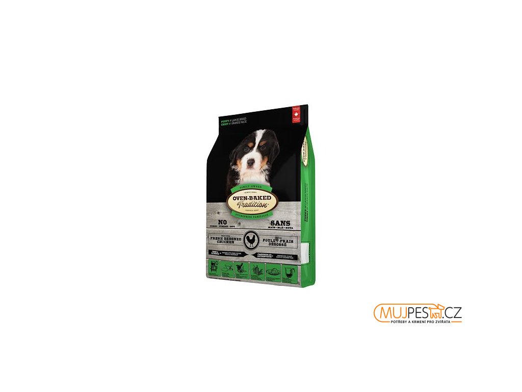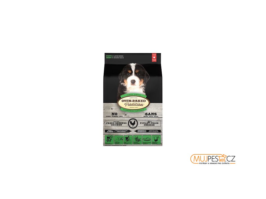 Oven-Baked Tradition Puppy Chicken Large Breed je kompletní krmivo pro štěňata velkých plemen s kuřecím masem.