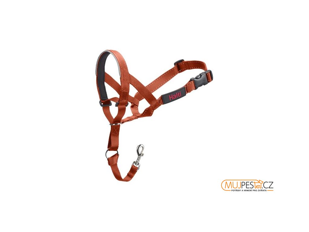 Ohlávka Halti fungující na principu koňské ohlávky šetrným způsobem znemožňuje psovi tahání na vodítku. Hlava je vedena tahem, tělo následuje automaticky. Ohlávka je v oblasti čumáku vypolstrovaná.