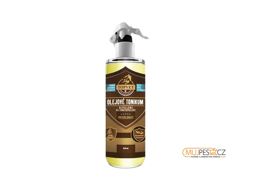 Olejové tonikum je určené pro koně v prostředí s výskytem létavého hmyzu a dalších vnějších parazitů (komáři, mouchy, ovádi, vši, klíšťata a další). Originální kompozice rostlinných výtažků účinně ošetřuje srst a kůži koně a pomáhá odpuzovat vnější parazity. Na přírodní aktivní látky se nevytváří rezistence a nepoškozuje zdraví koní.