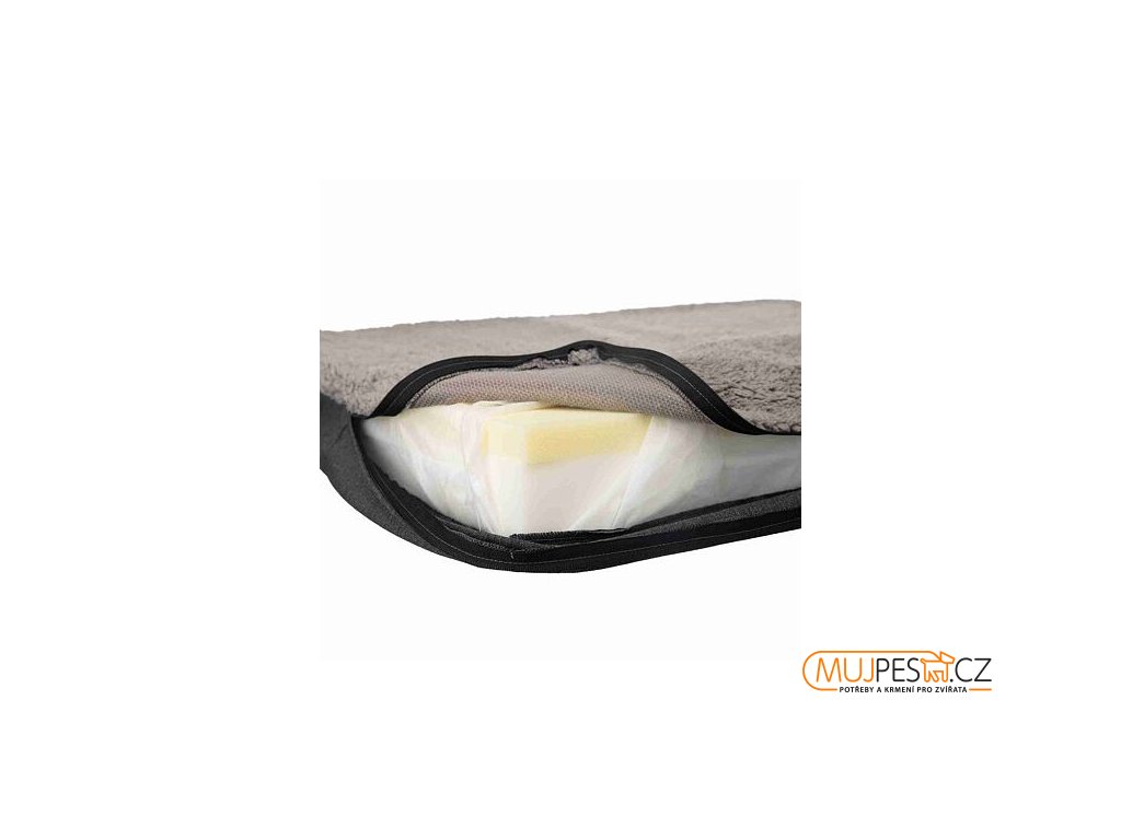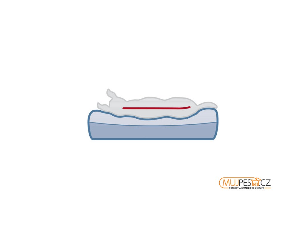 Bezpečnostní upozornění: ortopedický pelíšek je určen pouze k odpočinku a spánku. Není vhodný ke hře ani k okusování. V případě, že pes pelíšek poškodí (prokousání, roztržení), výrobek dále nepoužívejte, aby nedošlo k polknutí výplně nebo jiných částí. Doporučujeme pelíšek pravidelně kontrolovat a udržovat v čistotě podle pokynů výrobce.