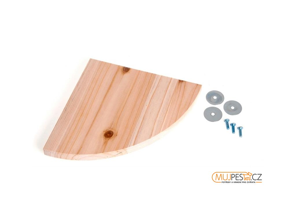Dřevěné odpočívadlo pro hlodavce. Kovové úchyty (šrouby) k uchycení na mříž jsou součástí odpočívadla.