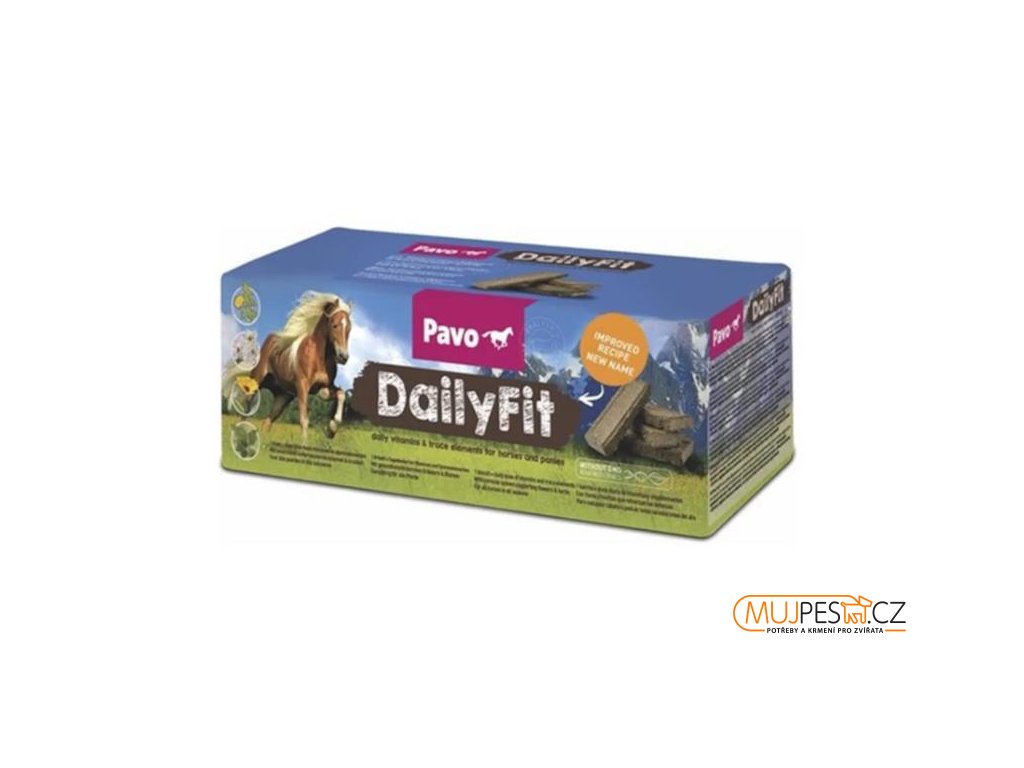 Pavo DailyFit je velmi chutná vitaminová oplatka, která obsahuje denní dávku vitamínů a stopových prvků. Je vhodná pro všechny koně a poníky, protože obsahuje pouze živiny, které váš kůň potřebuje, bez další energie a kalorií, jako v koncentrovaném krmivu. Pavo DailyFit neobsahuje obiloviny, a proto má nízkou hladinu cukru a škrobu. Kromě toho jsou oplatky obohaceny o prebiotika na podporu střevní mikroflóry. Dále obsahují různé květiny a byliny pro zdraví vašeho koně - hloh, pampelišku, měsíček a kopřivu.