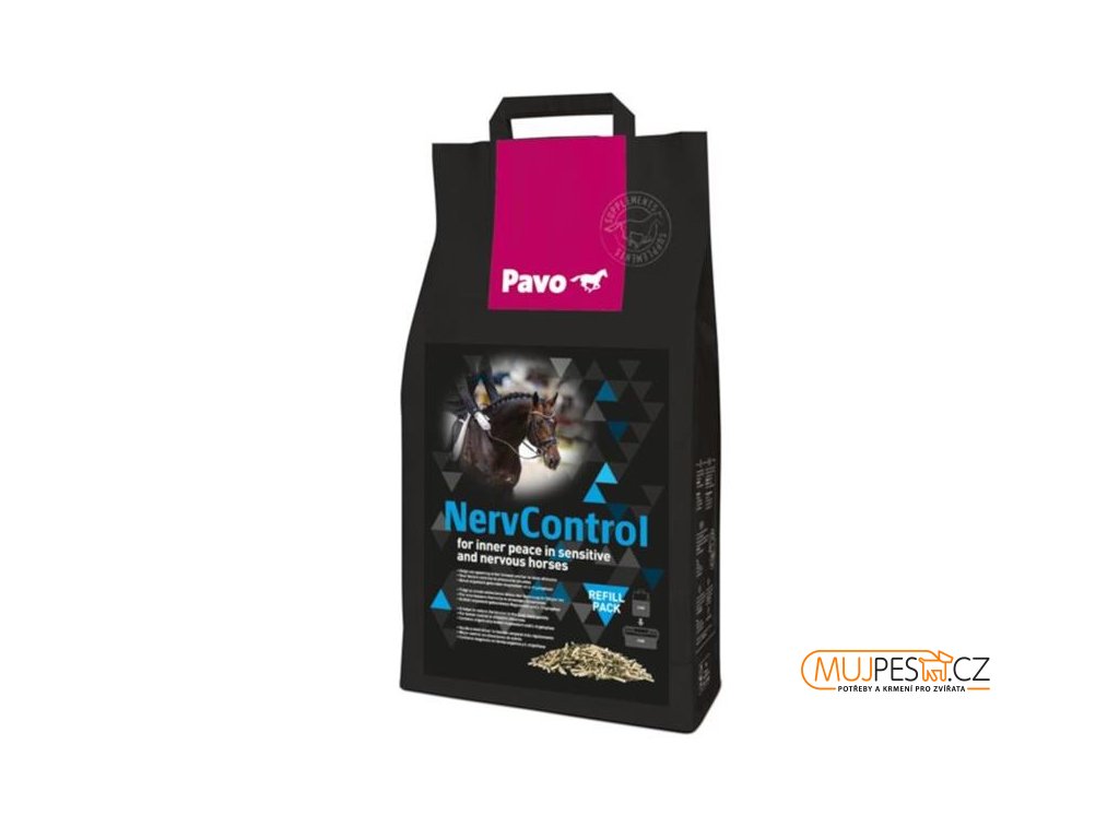 Aminokyseliny tryptofan a threonin jsou nezbytné pro produkci hormonů serotoninu a melaninu, které mají uklidňující účinek a snižují pocit úzkosti v mozku. Přidává se i hořčík, který podle klinických studií snižuje pocit úzkosti. Pro optimální příjem a zachování chutnosti se používají tři formy hořčíku. Pavo NervControl neobsahuje pšenici, je tedy vhodný pro koně citlivé na lepek.