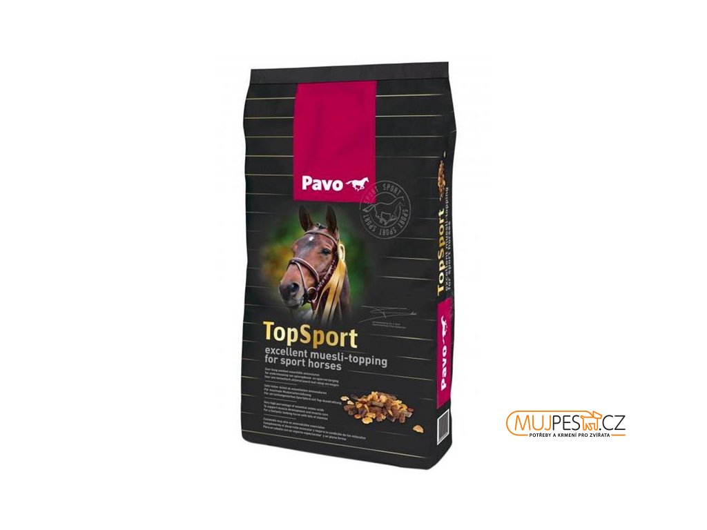 Jak ukazují výzkumy Pavo, kvalita objemného krmiva je stále nižší a nižší. Proto se Pavo rozhodlo, ve spolupráci s nejlepšími veterinárními lékaři a top mezinárodními jezdci, vyvinout nové krmivo, které by tento problém řešilo. Pavo TopSport je müsli – pro TOP koně, jejichž výkonnost je na vysoké úrovni a nebo pro koně, kteří mají malý nebo vůbec žádný přístup na pastvu a dostávají objemné krmivo velmi nízké kvality.
