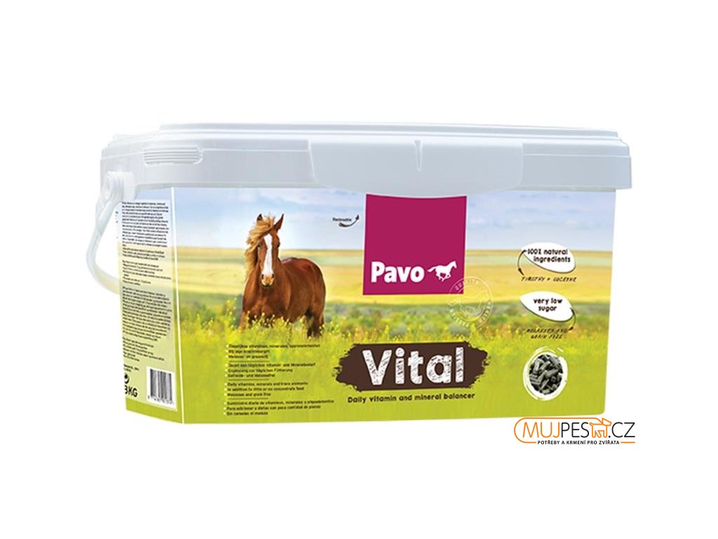 Obsah vitaminů (v kg): vitamin A 25.000 IE, vitamin D3 35.000 IE, vitamin E 6.000 mg, vitamin B1 400 mg, vitamin B2 400 mg, vitamin B6 250 mg, vitamin B12 3.500 µg, vitamin C 5.000 mg, kyselina pantothenová 400 mg, cholin 876 mg, Folin 225 mg, niacin 1.050 mg, D-biotin 20.000 mcg.