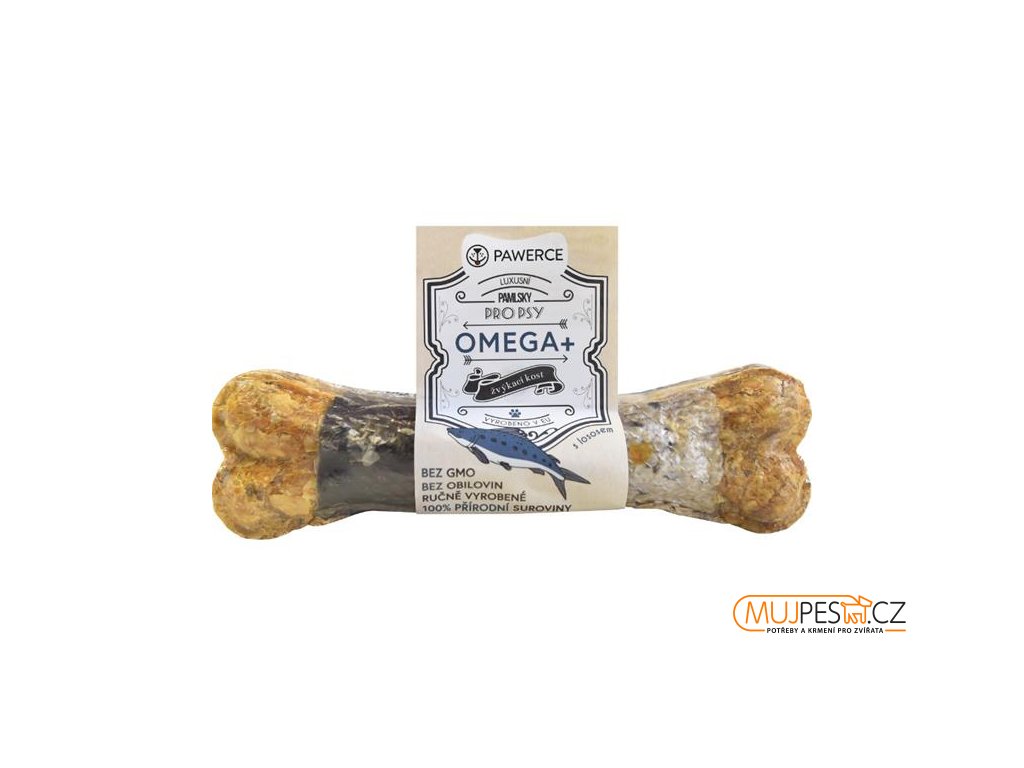 Základ těchto delikátních pamlsků tvoří vysoce kvalitní vnitřní část hovězí kůže, doplněná špenátem a kurkumou a obalená kůží z lososa. Omega kost obsahuje maso a kůži z lososa, které představují vynikající zdroj mastných kyselin. Špenát a kurkuma působí protizánětlivě a pomáhají snižovat riziko vzniku srdečních onemocnění. Navíc zdravé žvýkání zabaví vašeho psa na dlouhou dobu.