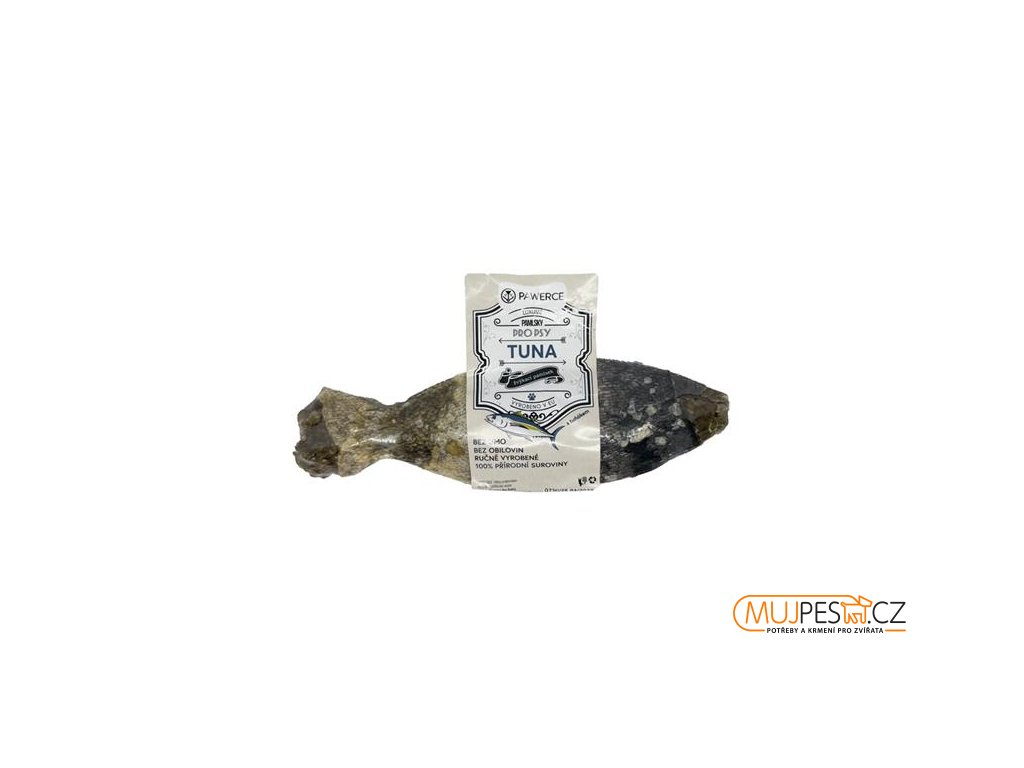 Luxusní pamlsek ve tvaru ryby Pawerce Tuna je 100% přírodní, originální a chutná žvýkačka s tuňákem a treskou pro dospělé psy. Vzhledem k nízkému procentu tuku je pamlsek ideální i pro psy se sklony k nadváze. Žvýkání psa zabaví a posílí jeho žvýkací svaly.