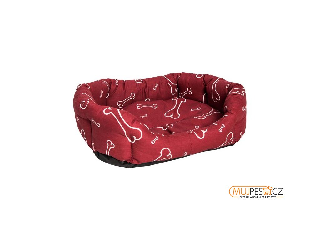 Pohodlný, kvalitní pelech vyrobený z bavlněné látky s potiskem kostí. Zvýšený okraj poskytuje perfektní oporu a tepelnou izolaci. Pelíšek je v několika bodech prošitý, aby nedošlo k nerovnoměrnému rozmístění výplně. Polštářek je vyjímatelný. Pelech se lehce udržuje.