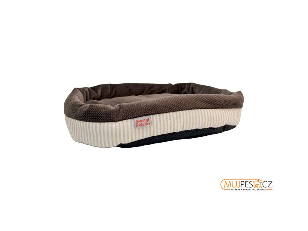 Pelech dr.savec ovál M, béžovobílé proužky, čokoládový velvet 30x25cm