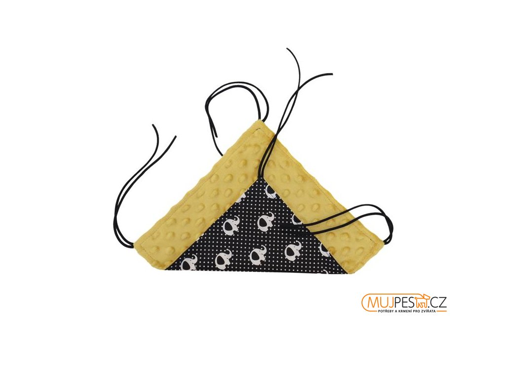 Pelech dr.savec závěsný S, černobílí sloni, okrová minky 23x23cm