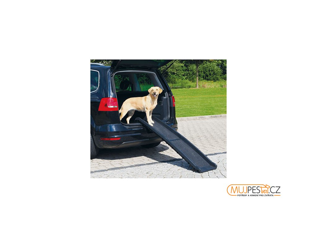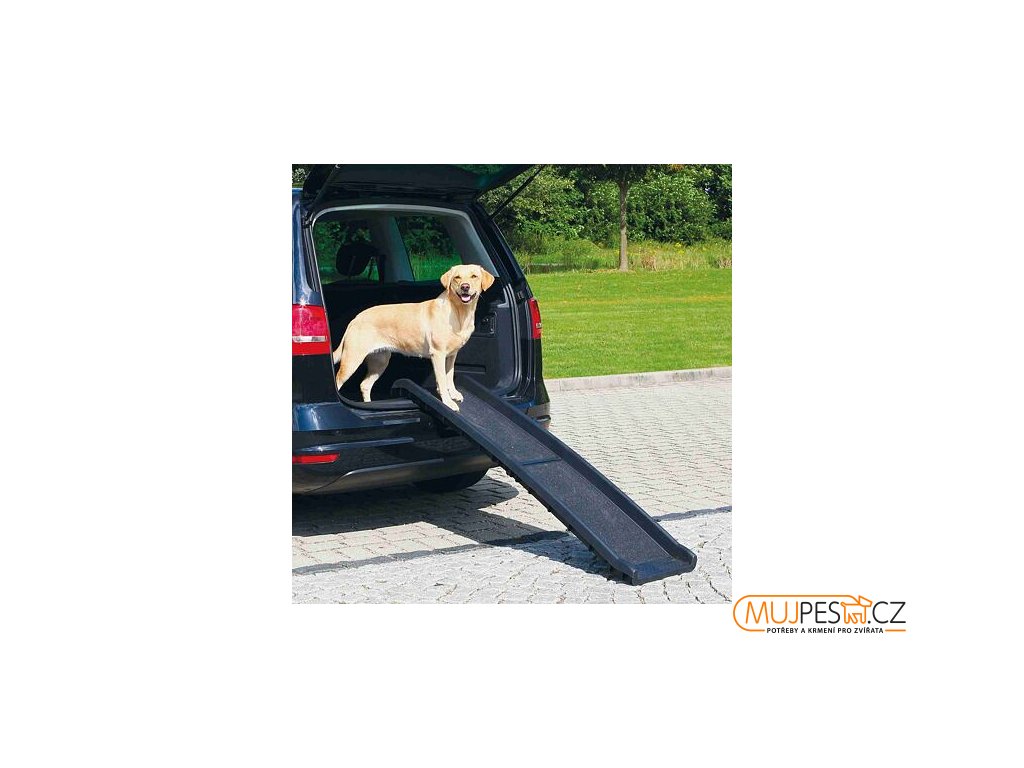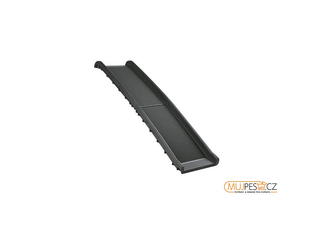 Rampa pro psy s neklouzavý rovným povrchem. Zvýšené bezpečnostní kraje, které imformují psa při došlapu, že je mimo rampu. Díky své skládací konstrukci nabízí univerzální použití a snadnou manipulaci.