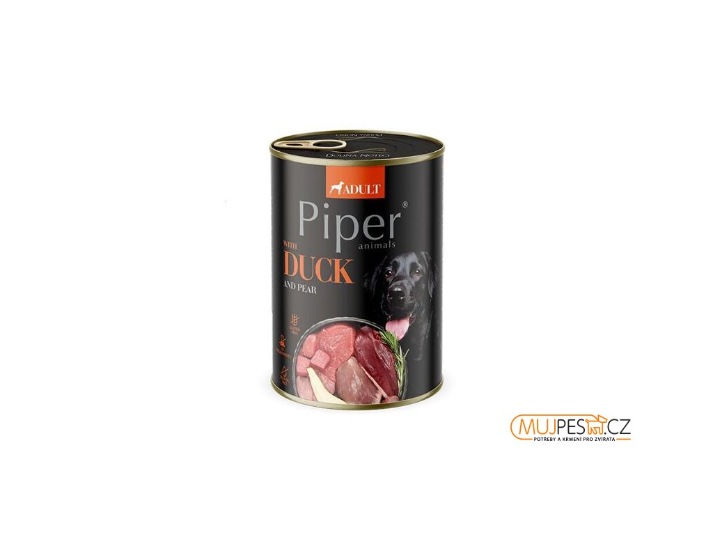 Piper konzerva pro psy s kachním filetem a hruškou.