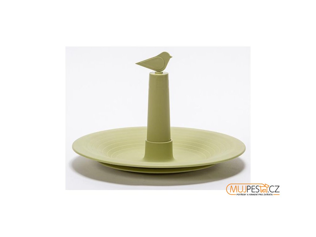 Exteriérové pítko zaujme moderním designem, který zapadne do každé zahrady nebo ozdobí balkón. Díky otvorům ve spodní části jej můžete buď nasadit na tyč, nebo připevnit k podložce (např. připoutat k zábradlí elektrikářskými stahovacími páskami – viz 2. obrázek). Umístění je vhodné do volného prostoru, ideálně do stínu. V horkých dnech může pítko sloužit ptákům i jako koupátko.