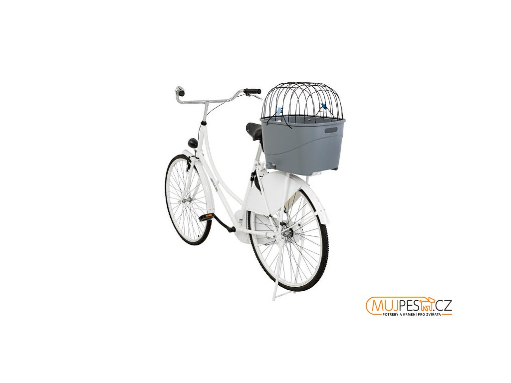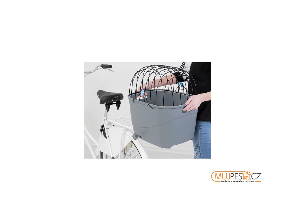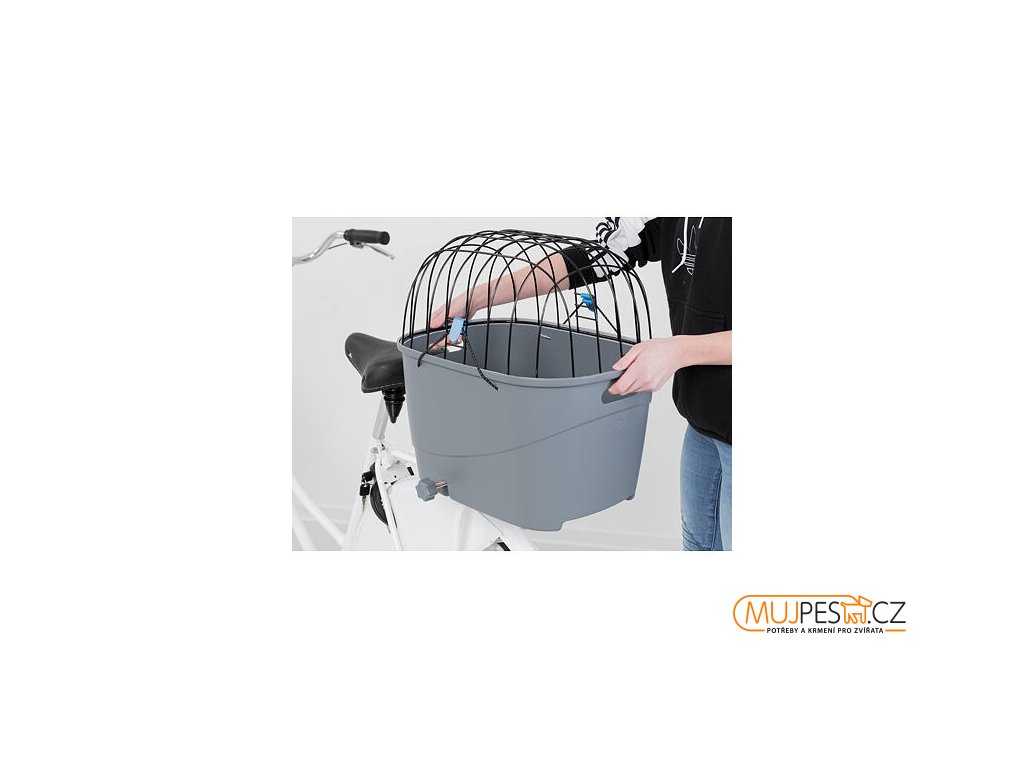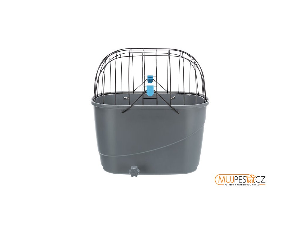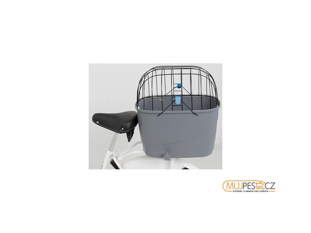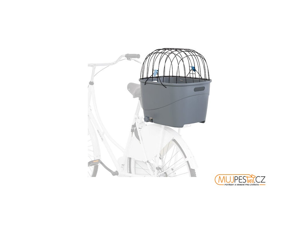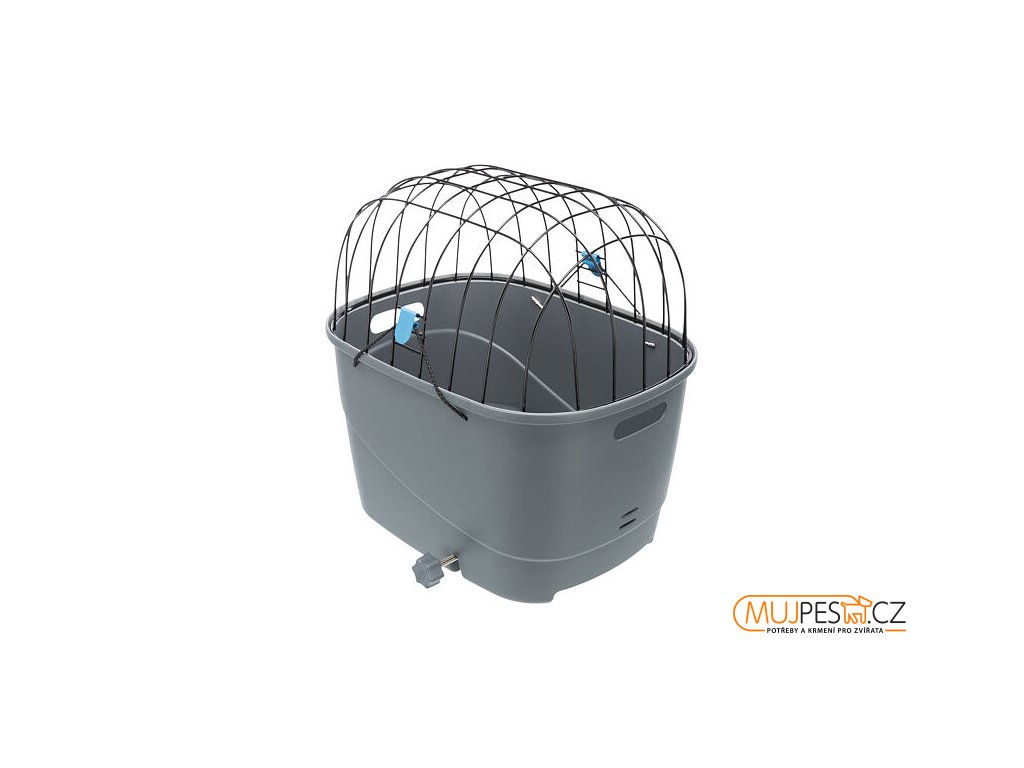 Plastový košík na zadní nosič, s mřížkovou střechou, 36x47x46cm, šedý (max. 6kg)