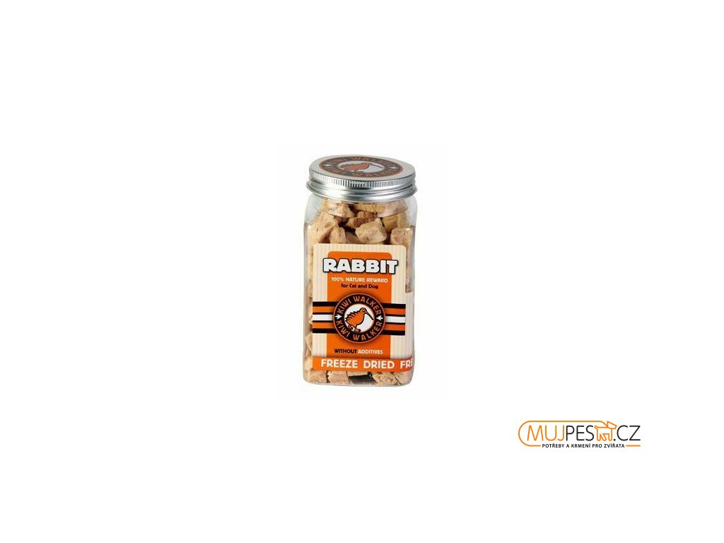 100% mrazem sušené králičí maso - přírodní, bez přidaných látek nebo konzervantů. Tyto malé kostky mají báječnou vůni, která zaručeně upoutá vašeho mazlíčka. Skvělá volba pro zdravé odměňování.