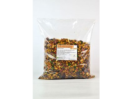 Vaječno-ovocná směs pro papoušky s ořechy a čili papričkami. Doplněk k běžnému krmivu, který obohacuje běžně podávané krmení.
