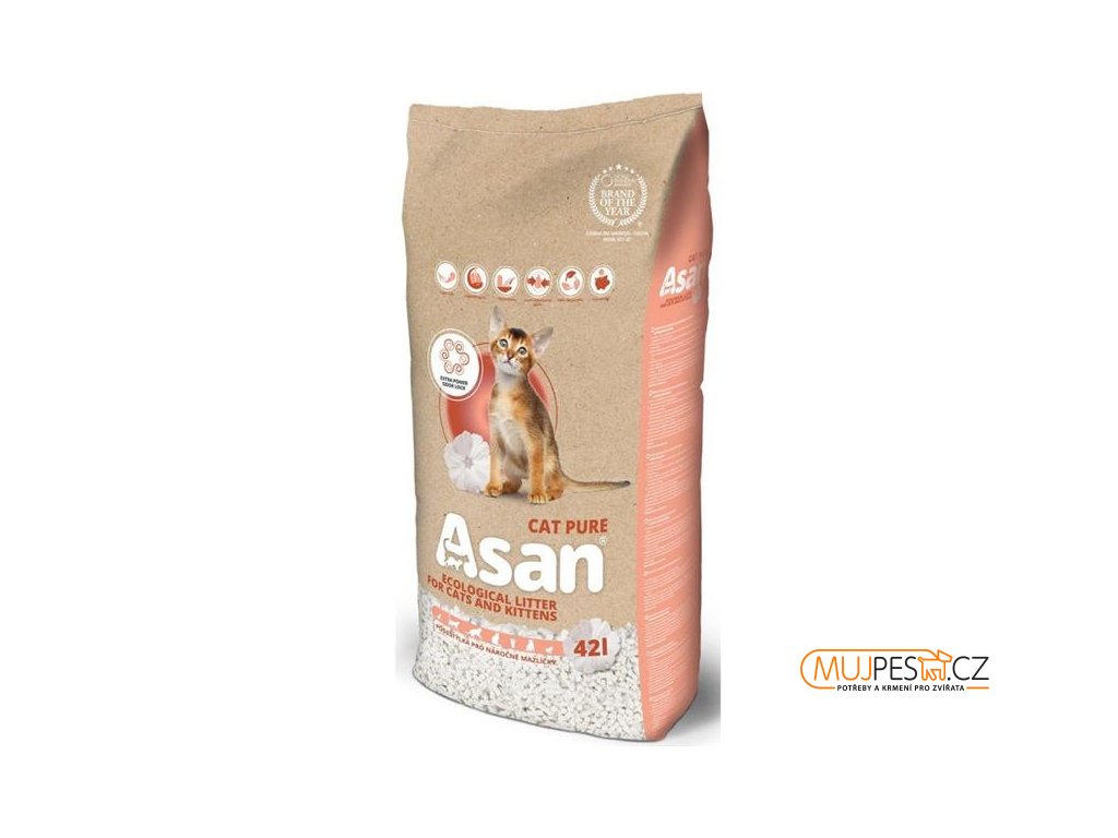 Asan Cat Pure je ekologická podestýlka pro krátkosrsté kočky a fretky s technologií absorpce pachů LAPUR. Nehrudkující stelivo je vhodné pro kočky s tradičními hygienickými návyky. Efektivně absorbuje pachy a prodlužuje tak životnost steliva v toaletě. Stelivo neobsahuje silice, parfémy a přidaná barviva.