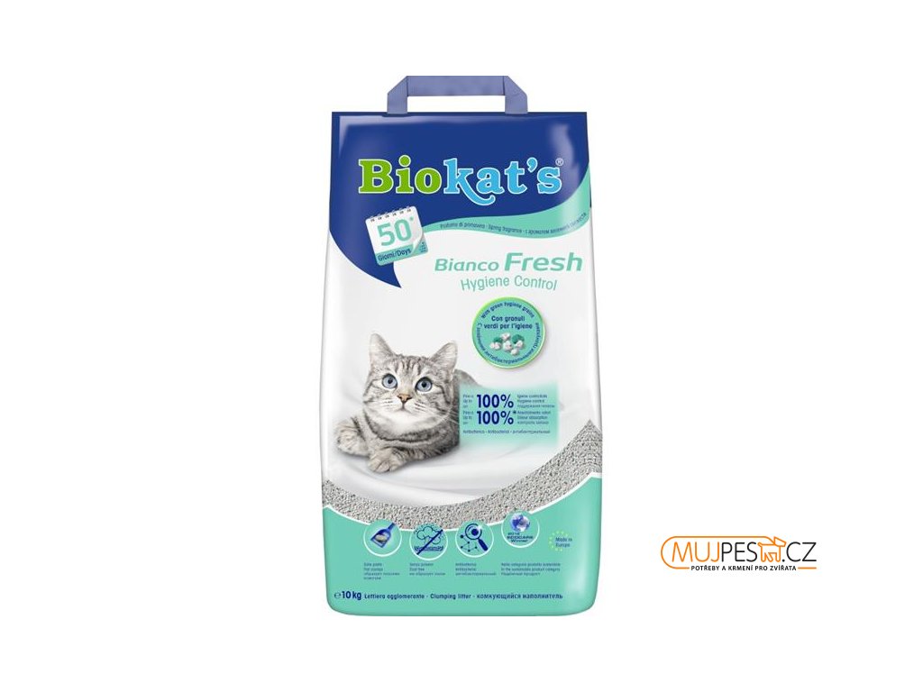 Kvalitní kočičí podestýlka Biokat's Fresh je silně hrudkující podestýlka s jarní vůní. Navíc výborně pohlcuje pach a je bezprašná.