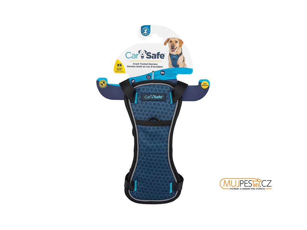 CarSafe Crash Tested Harness od společnosti Company of Animals je ultrapevný a lehký postroj pro psy prověřený při nárazových testech bezpečnosti motorových vozidel a certifikovaný do hmotnosti psa 32 kg. Má dvojí funkci – lze jej použít spolu s bezpečnostním pásem jako přepravní zádržný systém v autě i jako postroj k venčení psa. Je nejen bezpečný, ale také velmi pohodlný. Je vyrobený z kvalitního, pevného, a přesto lehkého materiálu s polstrovaným hrudním i hřbetním dílem opatřeným prodyšnou síťovinou. Speciální reflexní tkanina pak zajišťuje dobrou viditelnost psa v případě potřeby. Postroj je v horní části vybaven madlem, kterým lze protáhnout autopás a připoutat tak vašeho psa k zadnímu sedadlu. D-kroužky v hřbetní a hrudní části zase slouží pro připnutí vodítka v případě, kdy pes potřebuje opustit vozidlo. Díky přezkám na bocích postroj snadno a rychle nasadíte i svléknete, aniž by zvíře muselo zvedat tlapky, a pomocí plastových průvleků nastavíte potřebnou délku popruhu.