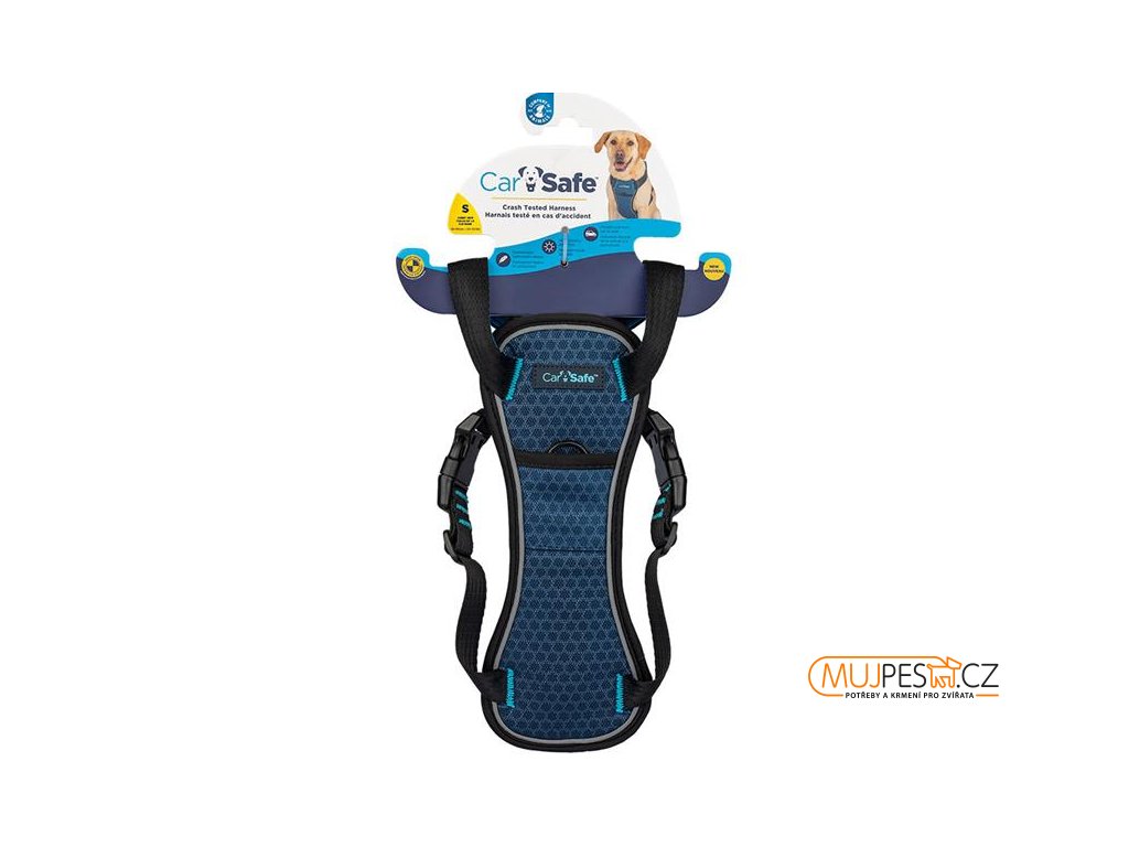 CarSafe Crash Tested Harness od společnosti Company of Animals je ultrapevný a lehký postroj pro psy prověřený při nárazových testech bezpečnosti motorových vozidel a certifikovaný do hmotnosti psa 32 kg. Má dvojí funkci – lze jej použít spolu s bezpečnostním pásem jako přepravní zádržný systém v autě i jako postroj k venčení psa. Je nejen bezpečný, ale také velmi pohodlný. Je vyrobený z kvalitního, pevného, a přesto lehkého materiálu s polstrovaným hrudním i hřbetním dílem opatřeným prodyšnou síťovinou. Speciální reflexní tkanina pak zajišťuje dobrou viditelnost psa v případě potřeby. Postroj je v horní části vybaven madlem, kterým lze protáhnout autopás a připoutat tak vašeho psa k zadnímu sedadlu. D-kroužky v hřbetní a hrudní části zase slouží pro připnutí vodítka v případě, kdy pes potřebuje opustit vozidlo. Díky přezkám na bocích postroj snadno a rychle nasadíte i svléknete, aniž by zvíře muselo zvedat tlapky, a pomocí plastových průvleků nastavíte potřebnou délku popruhu.