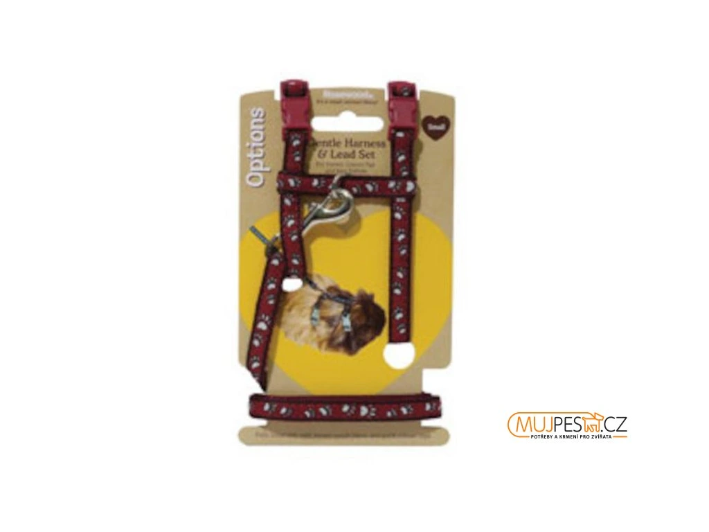Postroj hlod.nylon s vodítkem,tlapky/mix b. Rosewood small