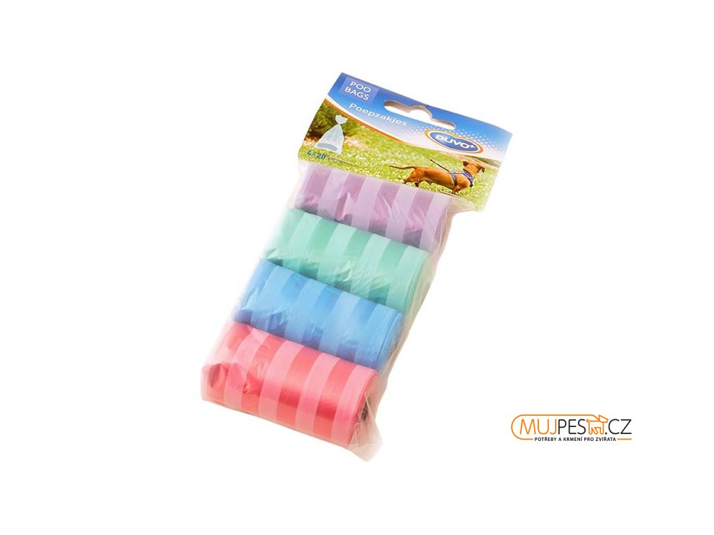 Jak si rozveselit den:-) Barevné sáčky na psí trus. Balení obsahuje 4 role igelitových sáčků po 20 ks.
