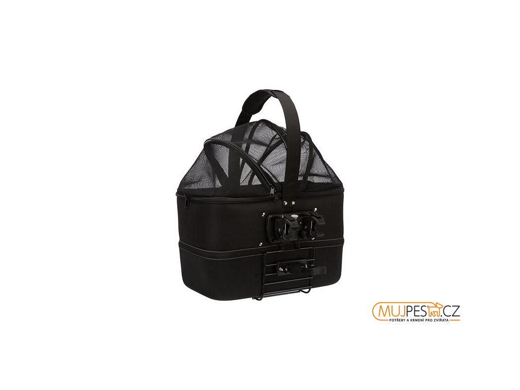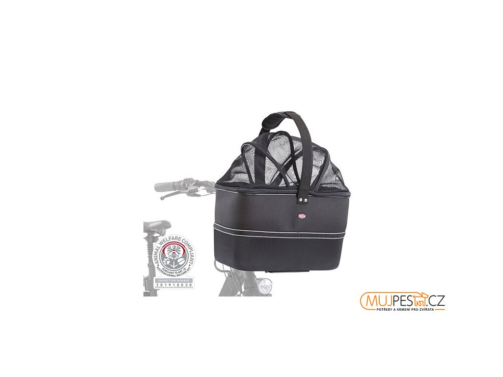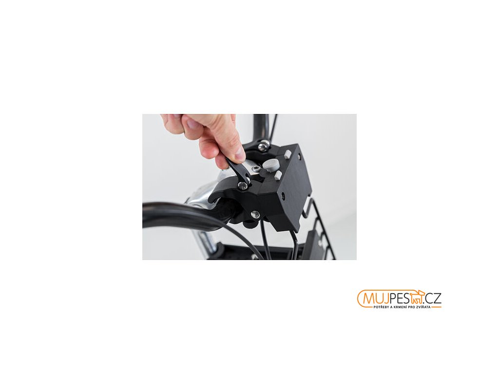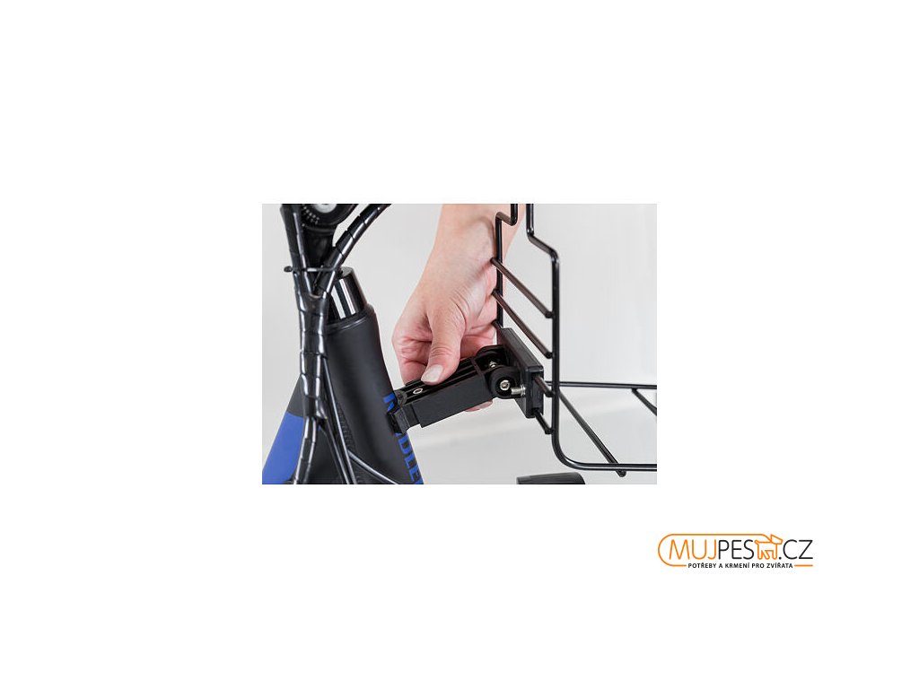 - pevný kovový rám pro bezpečný převoz zvířete na řídítkách kola