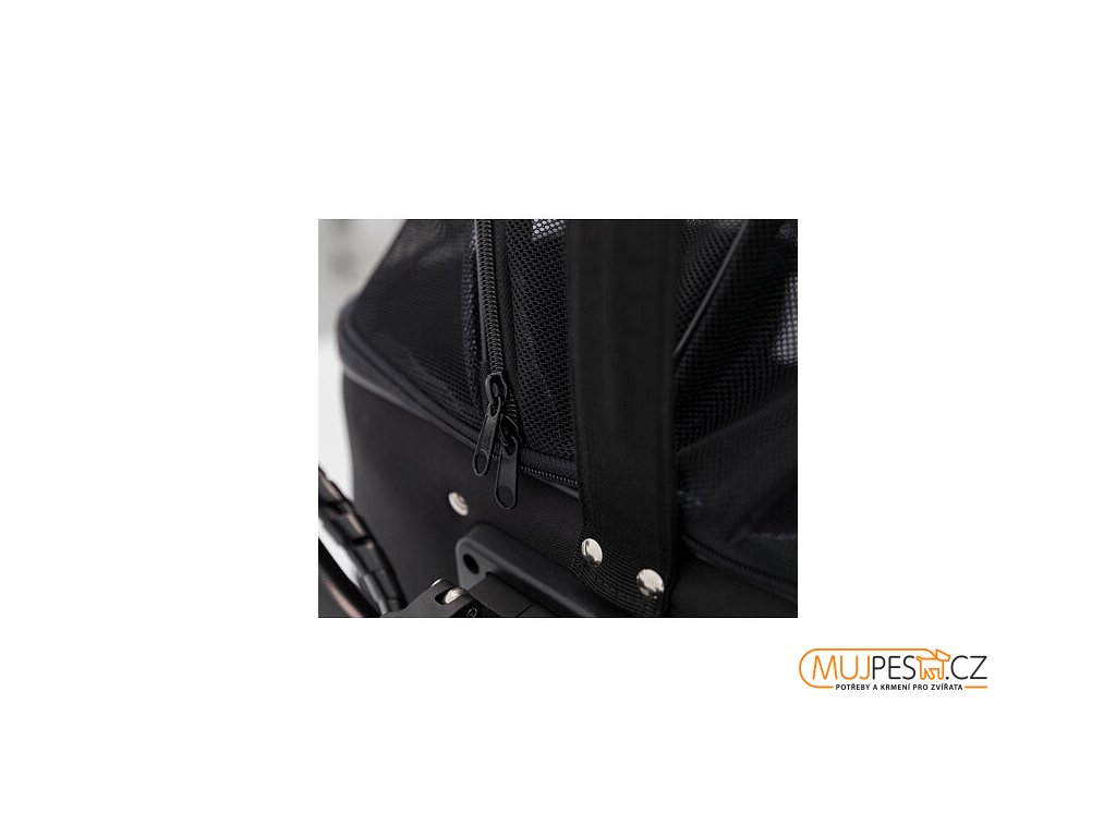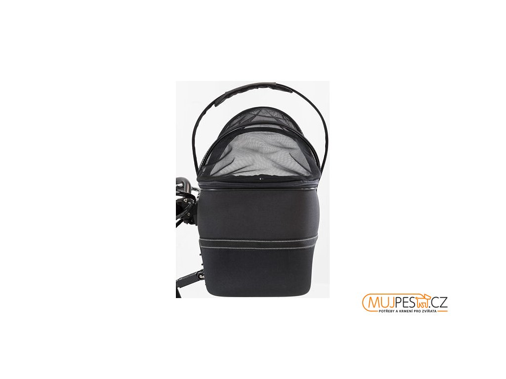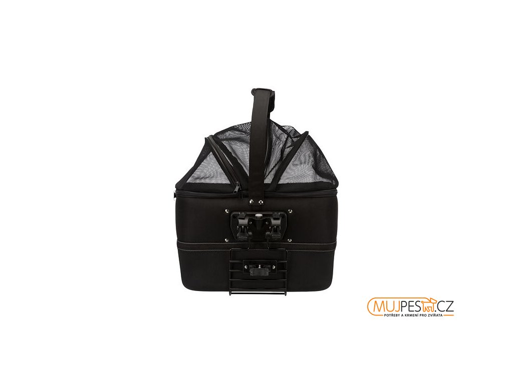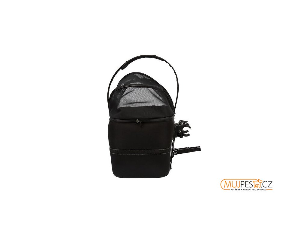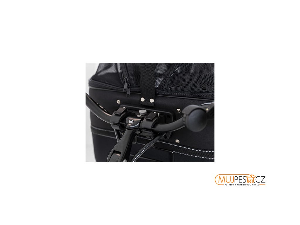 - pevný kovový rám pro bezpečný převoz zvířete na řídítkách kola