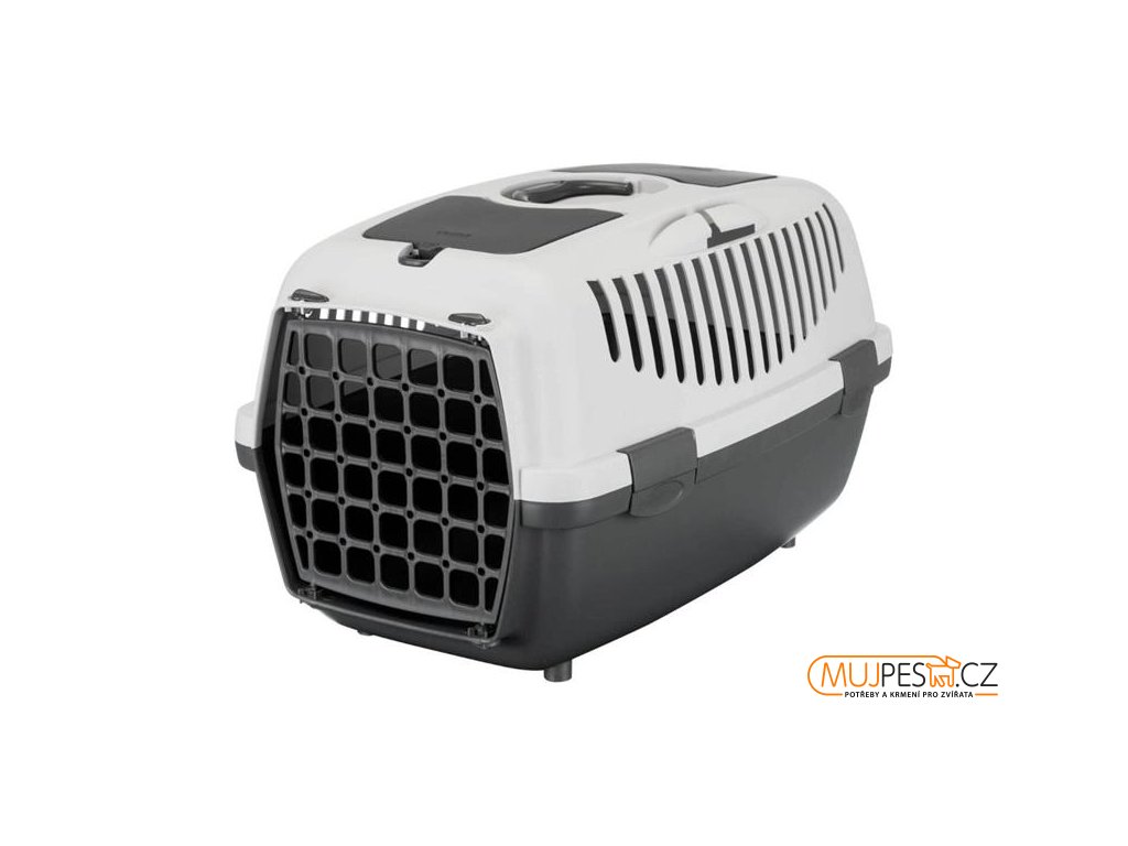 Cestovní přepravka s rukojetí a předními dvířky s mřížkou je určená k transportu psů malých plemen, koček, fretek, králíků a jiných savců menšího vzrůstu. Větrací otvory zajišťují optimální cirkulaci vzduchu při přepravě. Maximální nosnost je 8 kg.