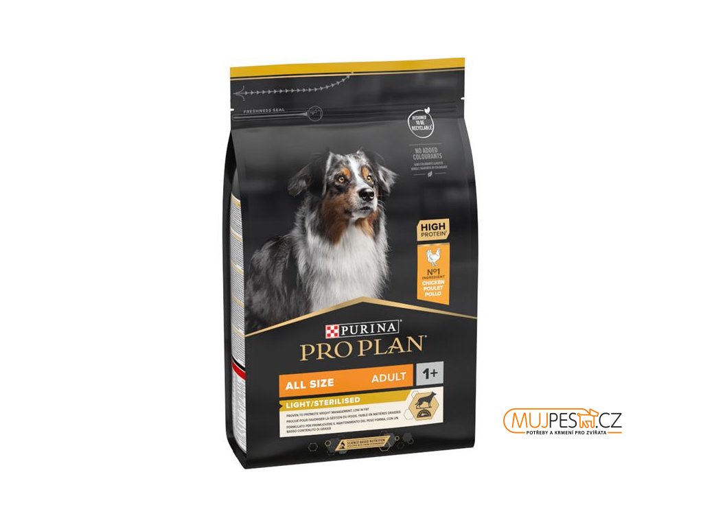 PRO PLAN Dog Adult ALL SIZE Light/Sterilised 14+2,5kg ZDARMA