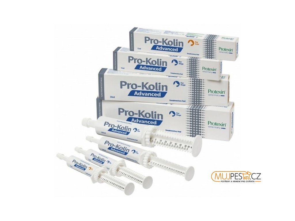 Pro-Kolin Advanced je vylepšený Pro-Kolin+, který je na trhu již od roku 1998. Navíc obsahuje psyllium, beta-glukany a vedle kaolinu další druh jílu (montmorilonit ze skupiny smectitů). Použití PKA poskytuje zvířeti několik výhod pro zvládnutí trávicích poruch.