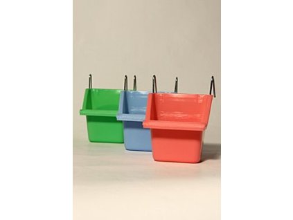 Napáječka nebo krmítko o objemu 130ml. Střední velikost. Krmítko je použitelné na vodu i sypanou stravu. Vhodné pro malé a středně velké papoušky.