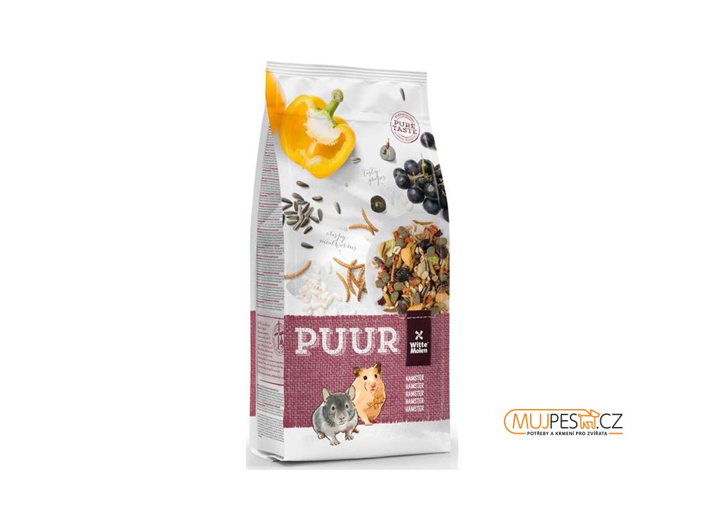 Receptura PUUR hamster pro křečky obsahuje vše, co křečci potřebují pro plnohodnotný život. Vyvážené složení s obsahem živočišných bílkovin pro dlouhodobé zdraví, s přidanými vitamíny a stopovými prvky pro zvýšení vitality a prebiotiky pro podporu zdravého trávení.