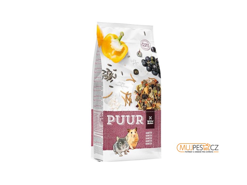 Receptura PUUR hamster pro křečky obsahuje vše, co křečci potřebují pro plnohodnotný život. Vyvážené složení s obsahem živočišných bílkovin pro dlouhodobé zdraví, s přidanými vitamíny a stopovými prvky pro zvýšení vitality a prebiotiky pro podporu zdravého trávení.