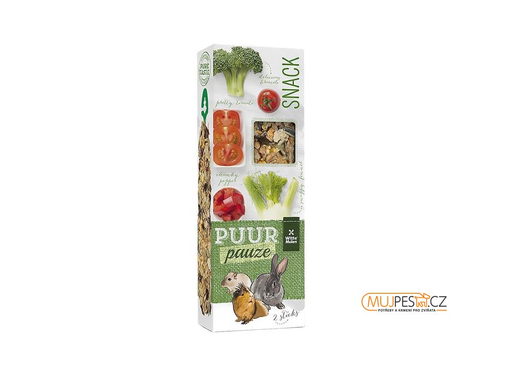 PUUR pauze Sticks se zeleninou jsou lahodné tyčinky pro drobné savce plné přírodních chutných složek pro skutečný gurmánský požitek. Křupavé tyčinky podnítí aktivitu zvířat, zabaví je a zaženou nudu.
