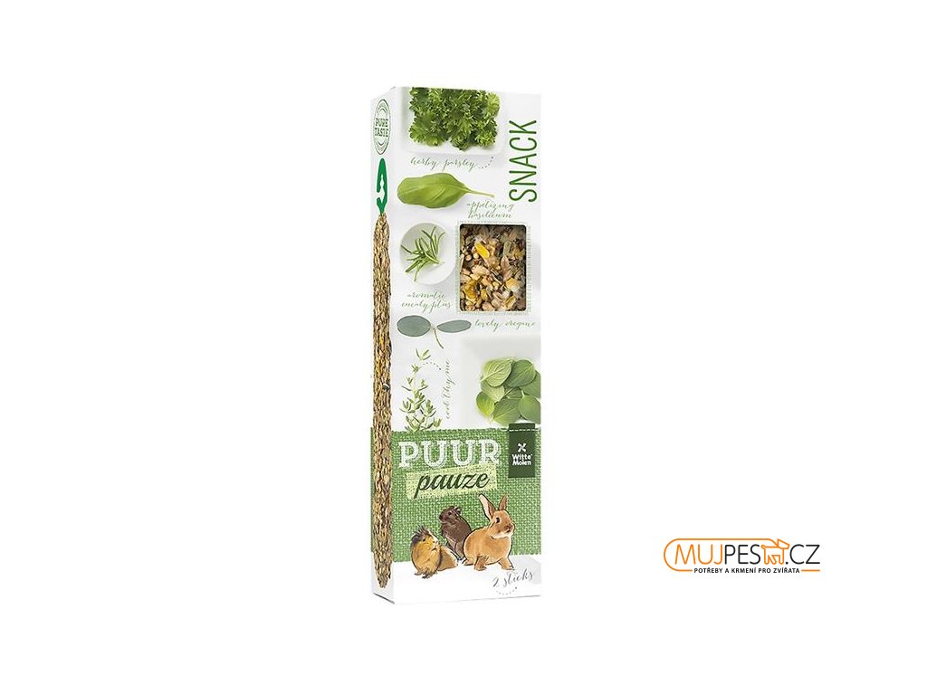 PUUR pauze Sticks s bylinkami jsou lahodné tyčinky pro drobné savce plné přírodních chutných složek pro skutečný gurmánský požitek. Křupavé tyčinky podnítí aktivitu zvířat, zabaví je a zaženou nudu.