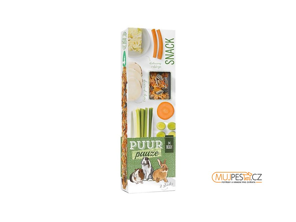 PUUR pauze Sticks se zeleninou jsou lahodné tyčinky pro drobné savce plné přírodních chutných složek pro skutečný gurmánský požitek. Křupavé tyčinky podnítí aktivitu zvířat, zabaví je a zaženou nudu.