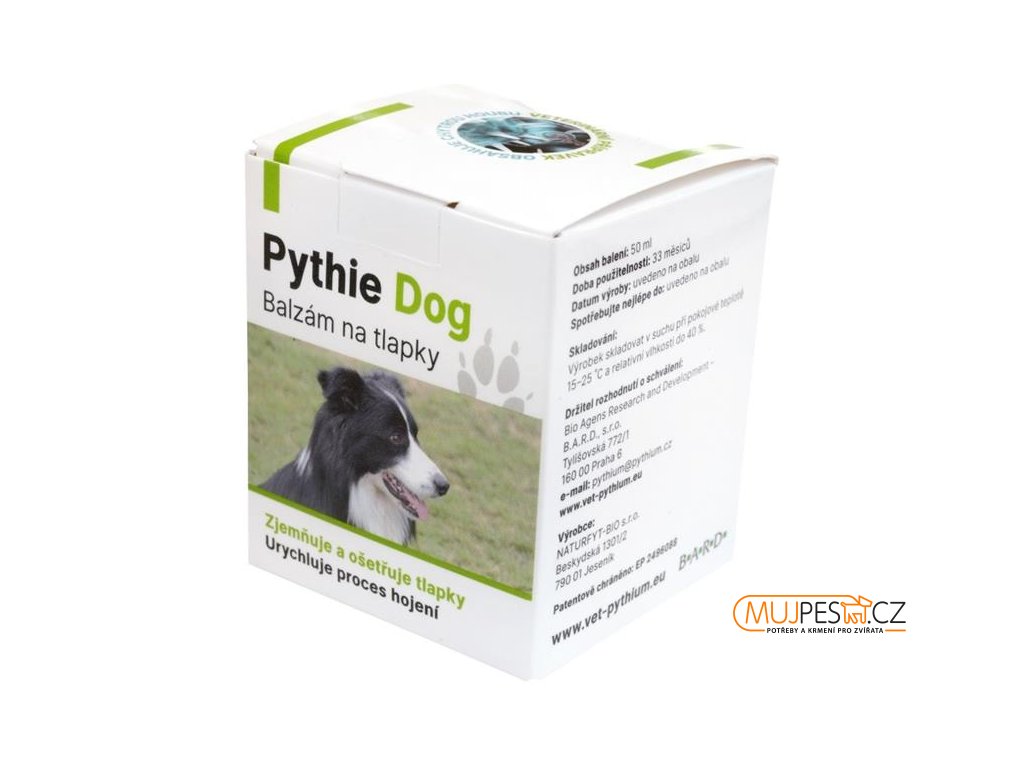 Pythie Dog Balzám na tlapky - zjemňuje a ošetřuje tlapky poškozené solí, zmrzlým sněhem nebo chůzí po nerovném povrchu. Pythie Dog Balzám na tlapky s jedinečným složením se používá za účelem jemné a pružné kůže na tlapkách psa. V případě poranění urychluje proces hojení.