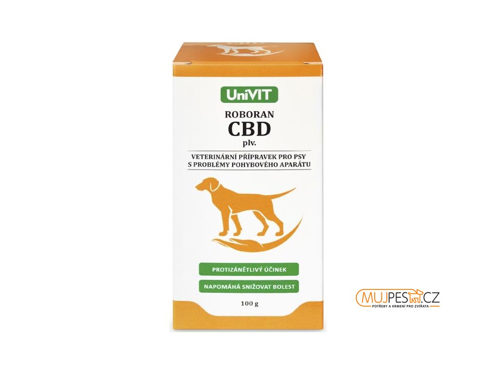 Roboran CBD je schválený veterinární přípravek ve formě prášku, který využívá široké spektrum účinků přírodních kanabinoidů, hesperidinu, MSM a žraločí chrupavky. Hesperidin zvyšuje biologickou dostupnost a účinky CBD a MSM. Přípravek má silný antioxidační účinek.