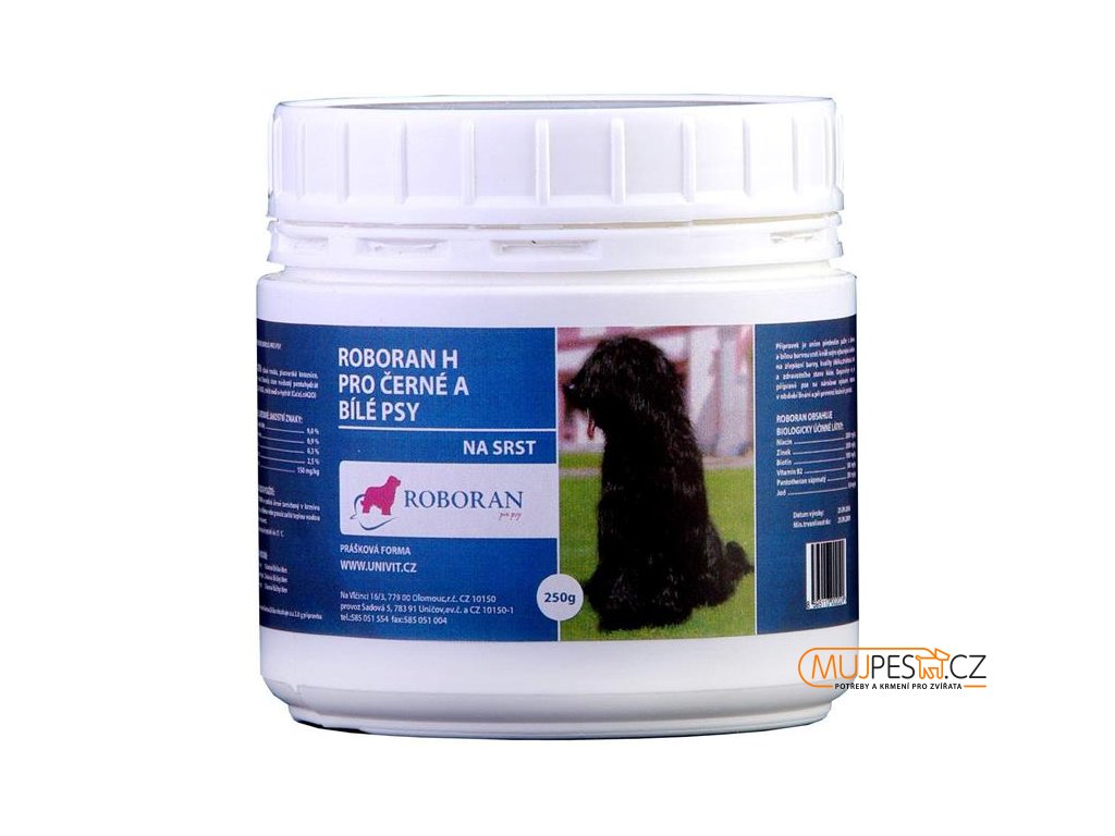 Doplněk biologicky účinných látek. Vhodnou kombinací komponent je dosaženo zlepšení kvality srsti. Obsahuje chuťový doplněk, pro který jej psi rádi přijímají.