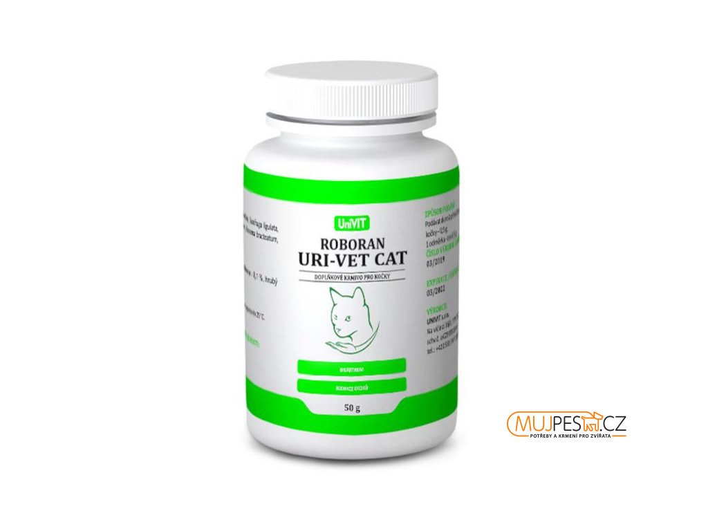 Roboran Uri-vet Cat je bylinný přípravek ve formě prášku určený pro kočky, ale lze jej podávat i psům malých plemen nebo psům, kteří mají problém s pozřením tablet. Podporuje funkci ledvin a močových cest nejen v případě chronického renálního selhání. U zvířat předchází nadměrné koncentraci moče a zamezuje tak vzniku močových kamenů. Dále chrání močové cesty před patogenními mikroorganismy. Používá se k prevenci a léčbě recidivujících infekcí močového systému, při nespecifických zánětech močovodu, močového měchýře a močové pánvičky, při dysfunkci ledvin a při nefrolithiáze.