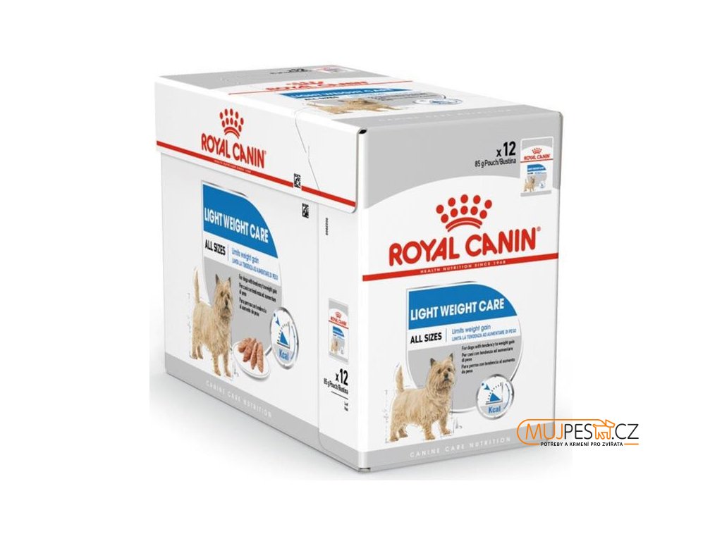 Kapsičky Royal Canin Light Weight Care jsou určené pro dospělé psy všech plemen a velikostí od 10 měsíců věku se sklonem k nadváze. Kompletní krmivo ve formě chutné paštiky pomáhá omezit nárůst hmotnosti psa.