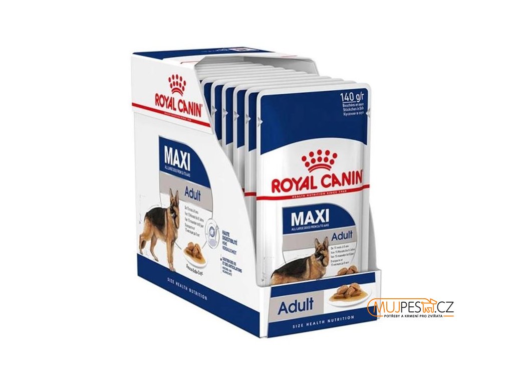 Kapsičky Royal Canin Maxi Adult jsou určené pro dospělé psy velkých plemen (26–44 kg) od 15 měsíců do 8 let věku. Kompletní krmivo ve formě chutných kousků ve šťávě zajišťuje vysokou stravitelnost a přidané omega-3 mastné kyseliny podporují zdraví kůže.