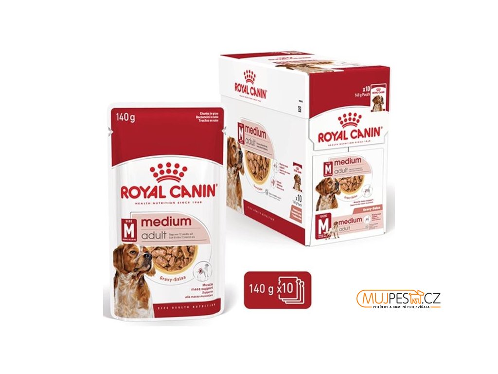 Kapsičky Royal Canin Medium Adult jsou určené pro dospělé psy středně velkých plemen (11–25 kg) od 12 měsíců do 7 let věku. Kompletní krmivo ve formě chutných kousků ve šťávě vyniká vysokou stravitelností a podporuje svalovou hmotu a celkové zdraví psa.