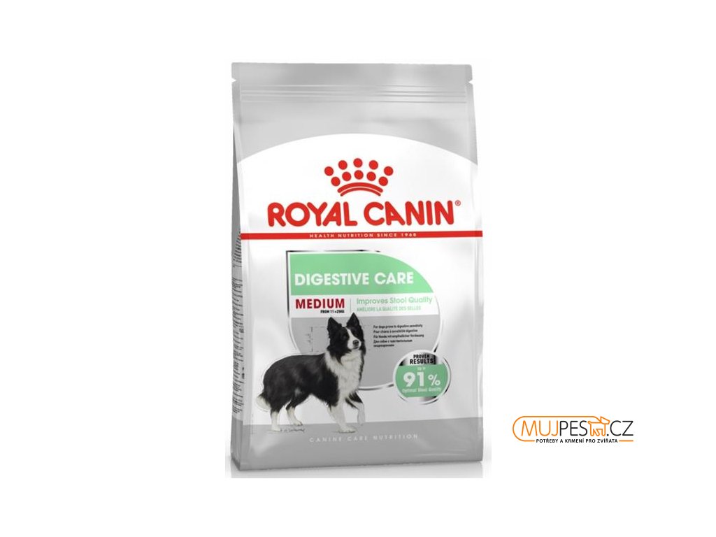 Krmivo ROYAL CANIN Digestive Care Medium je vhodné pro psy, kteří váží mezi 11 a 25 kg a jsou náchylní k citlivému zažívání.